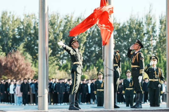 秋风送爽,丹桂飘香。为培养烟汽学子树立为民族复兴而努力奋斗的目标,坚定以爱国荣校为价值追求的不懈斗志。烟台汽车工程职业学院智能汽车工程系2024级新生于10月28日早上在红旗广场举行了以“青春奋进,爱国荣校”为主题的升旗仪式。