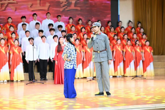 当一个个合唱团登上舞台,一袭亮眼的中国红服饰,一声声铿锵有力的青春声音,一句句震人心魂的歌词,伴随着指挥者手臂轻盈的摆动,推进在座的每一位观众心里。往日革命的艰辛和现如今的盛世华夏像电影般又在眼前闪现。