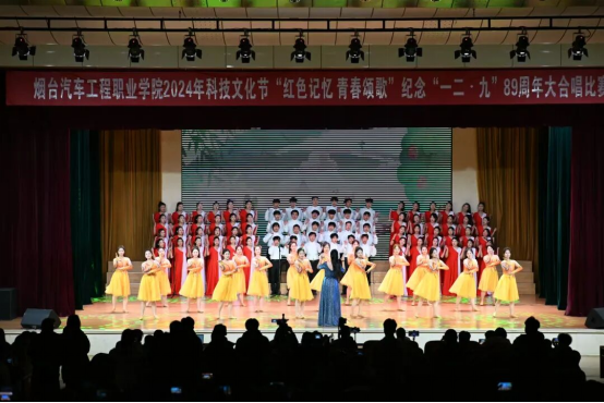 2024年12月9日,烟台汽车工程职业学院于图书馆二楼报告厅举行2024科技文化节“红色记忆 青春颂歌”纪念“一二九”89周年大合唱比赛。